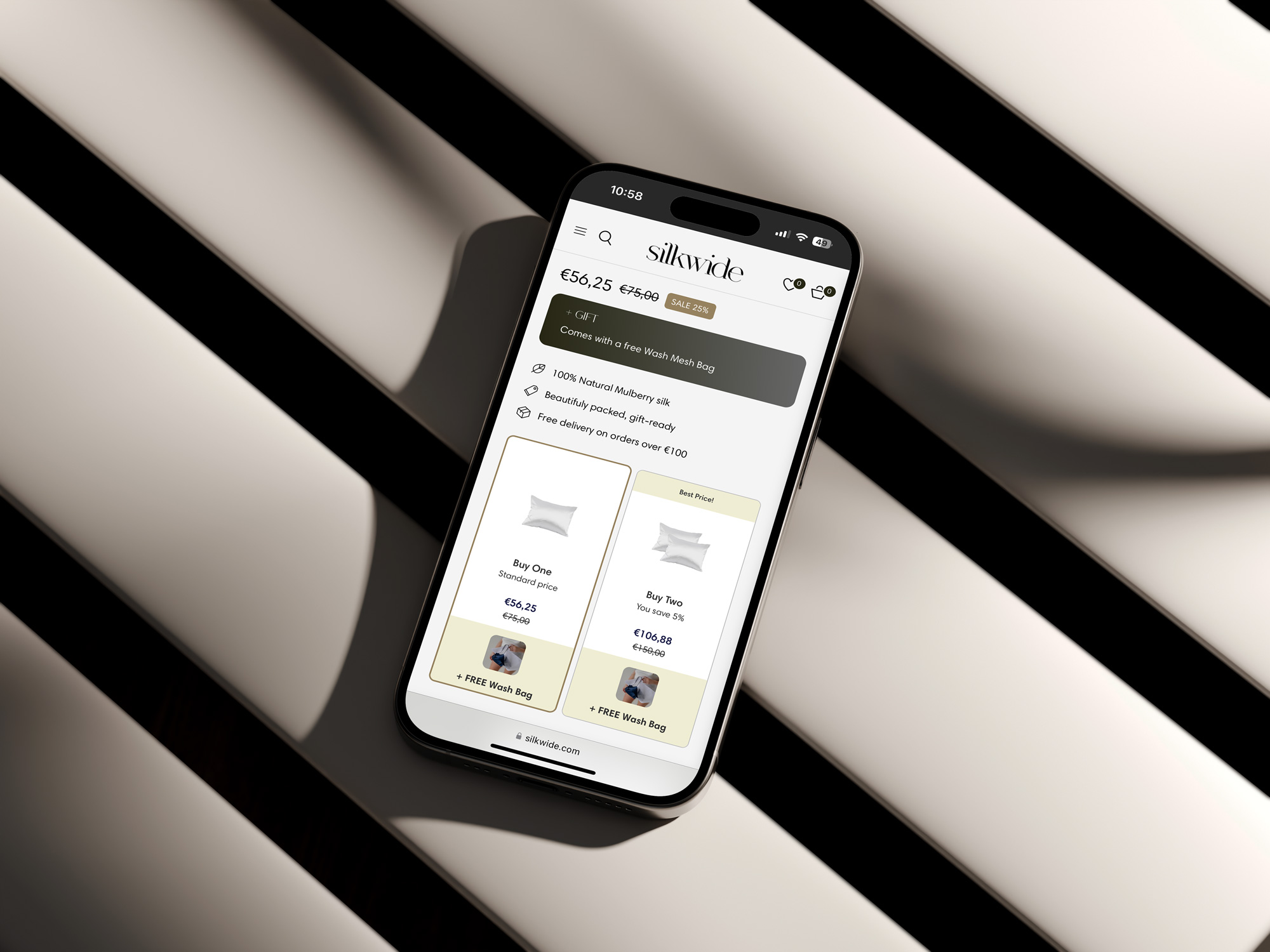 Shopify internetveikals uzņēmumam, kas tirgo zīda produkciju
